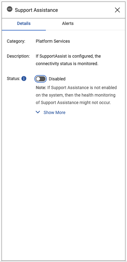 You’ll note for Support Assistance for instance, since it’s not configured on this system (it’s a lab server), there’s the option to disable health monitoring for it – shown in the details panel on the right-hand side. So, that means it can be flipped to disabled: